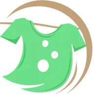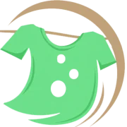 Green shirt icon with several holes in it, surrounded by a brown curved swoosh design on a plain background.